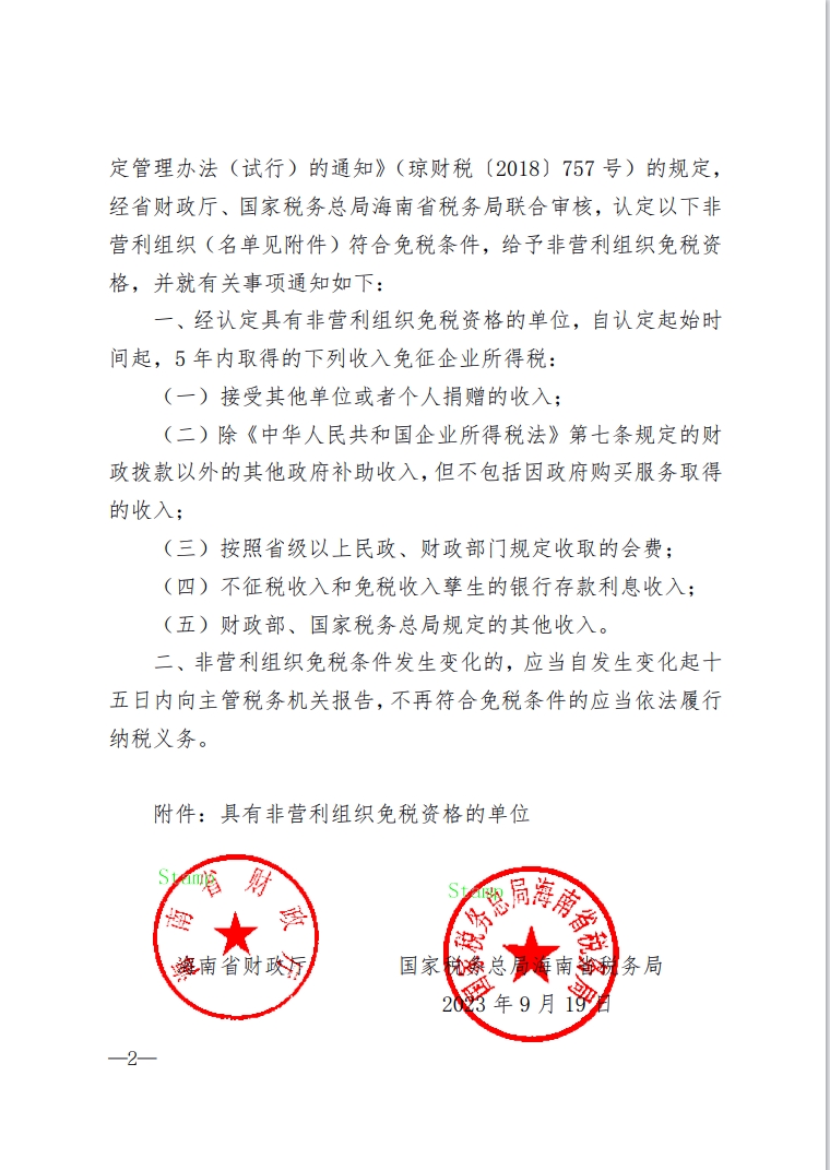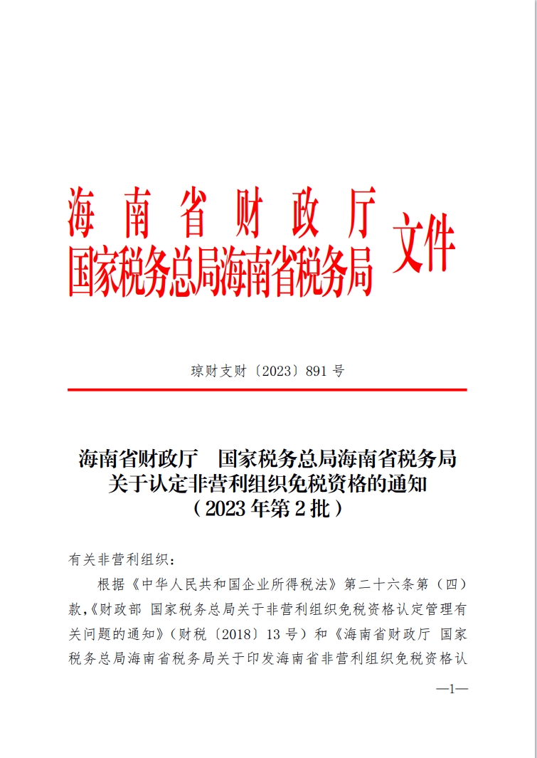 海南省三亚教育基金会获得非营利性组织免税资格